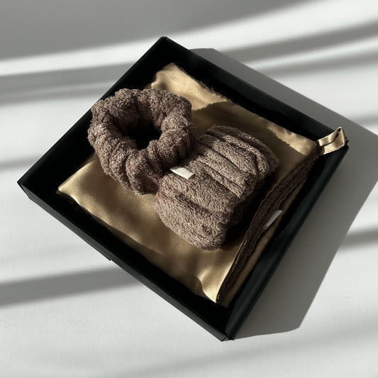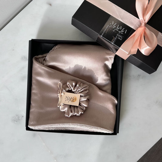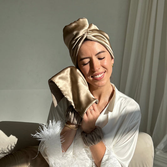 Kapučino dvipusis šilkinis plaukų rankšluostis