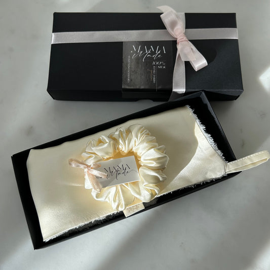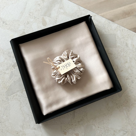 Šilkinio pagalvės užvalkalo ir gumelės rinkinys