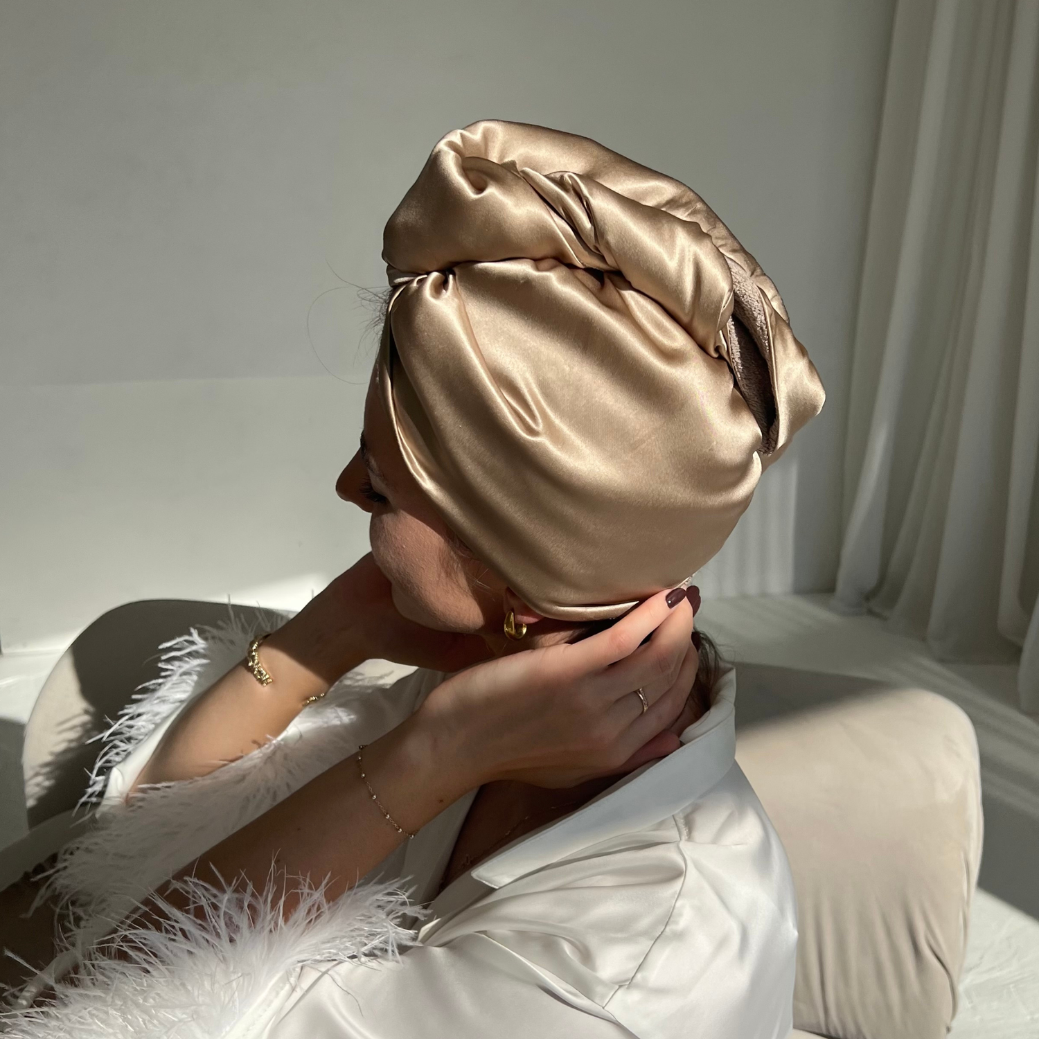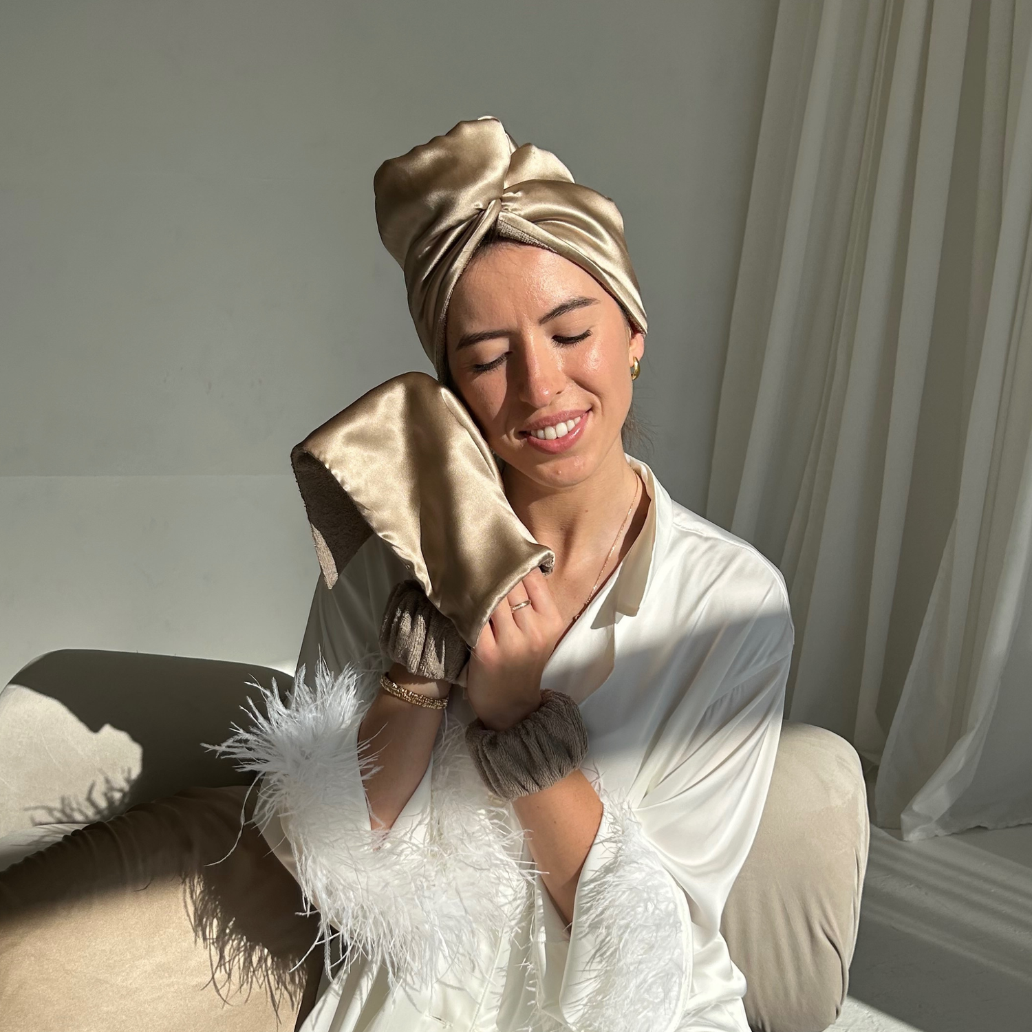Kapučino dvipusis šilkinis plaukų rankšluostis