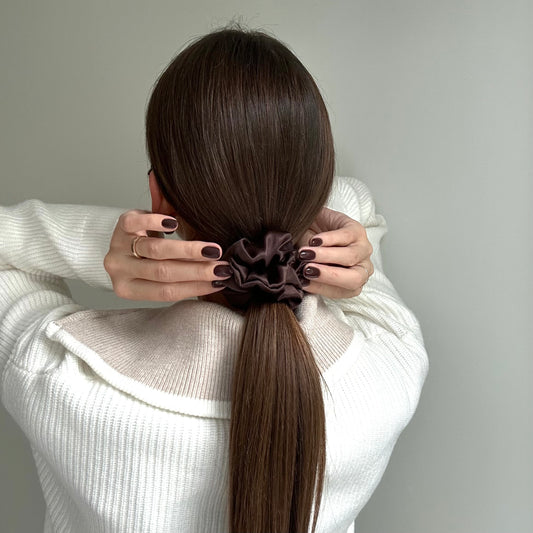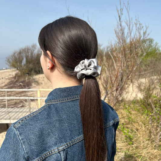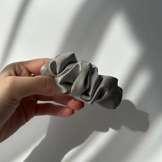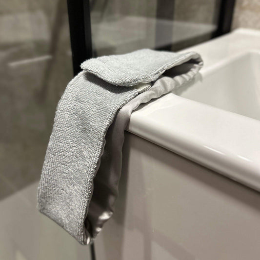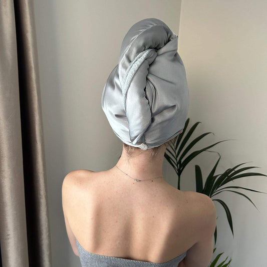 Pilkas dvipusis šilkinis plaukų rankšluostis