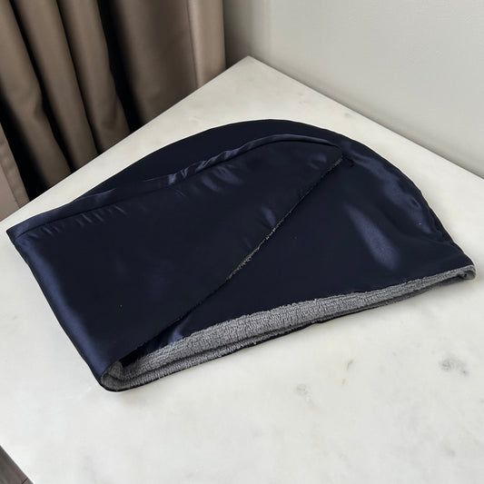 Mėlynas dvipusis šilkinis plaukų rankšluostis