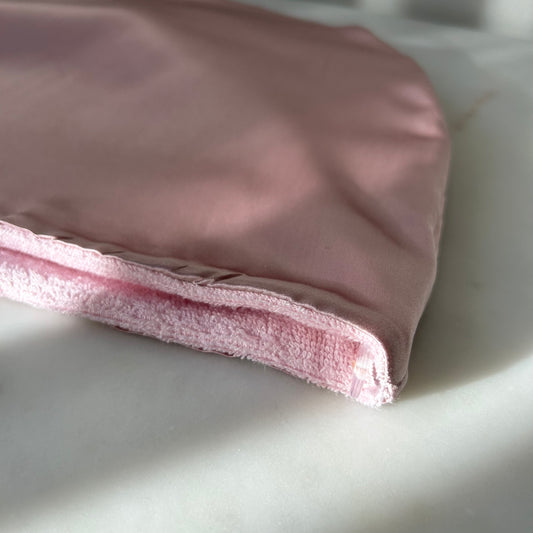 IšparduotaŠilkinis plaukų rankšluostis - pelenų rožinė