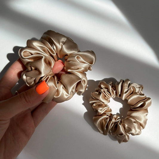 IšparduotaŠilkinės plaukų gumytės - švelniai auksinė