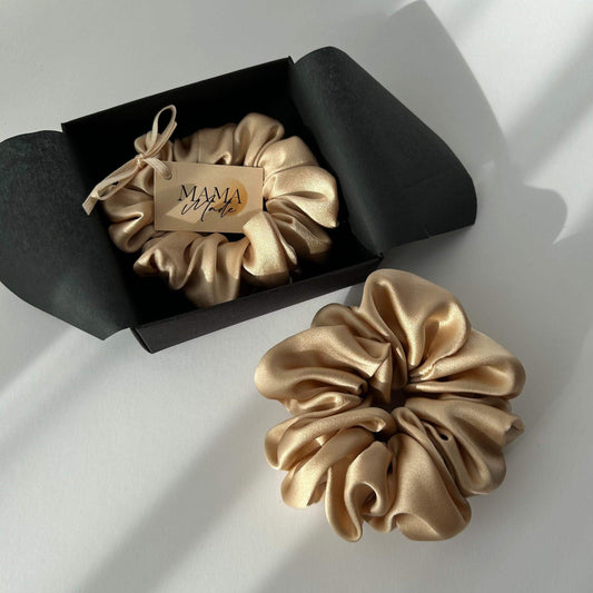 IšparduotaSmėlinė šilkinė plaukų gumytė