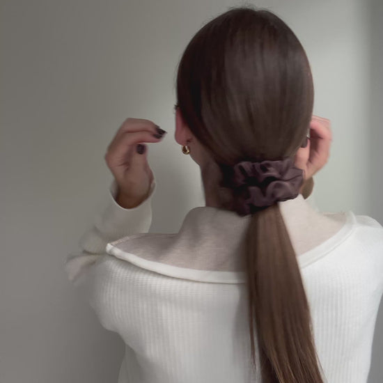 Šilkinė plaukų gumytė - šokoladinė